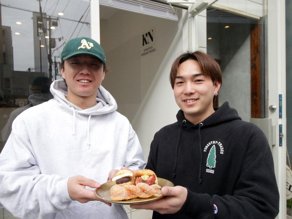 韓国ドーナツ店「KAEN」店主の二階堂蓮士さんと「木ノ下の林檎」の木下流晴さん