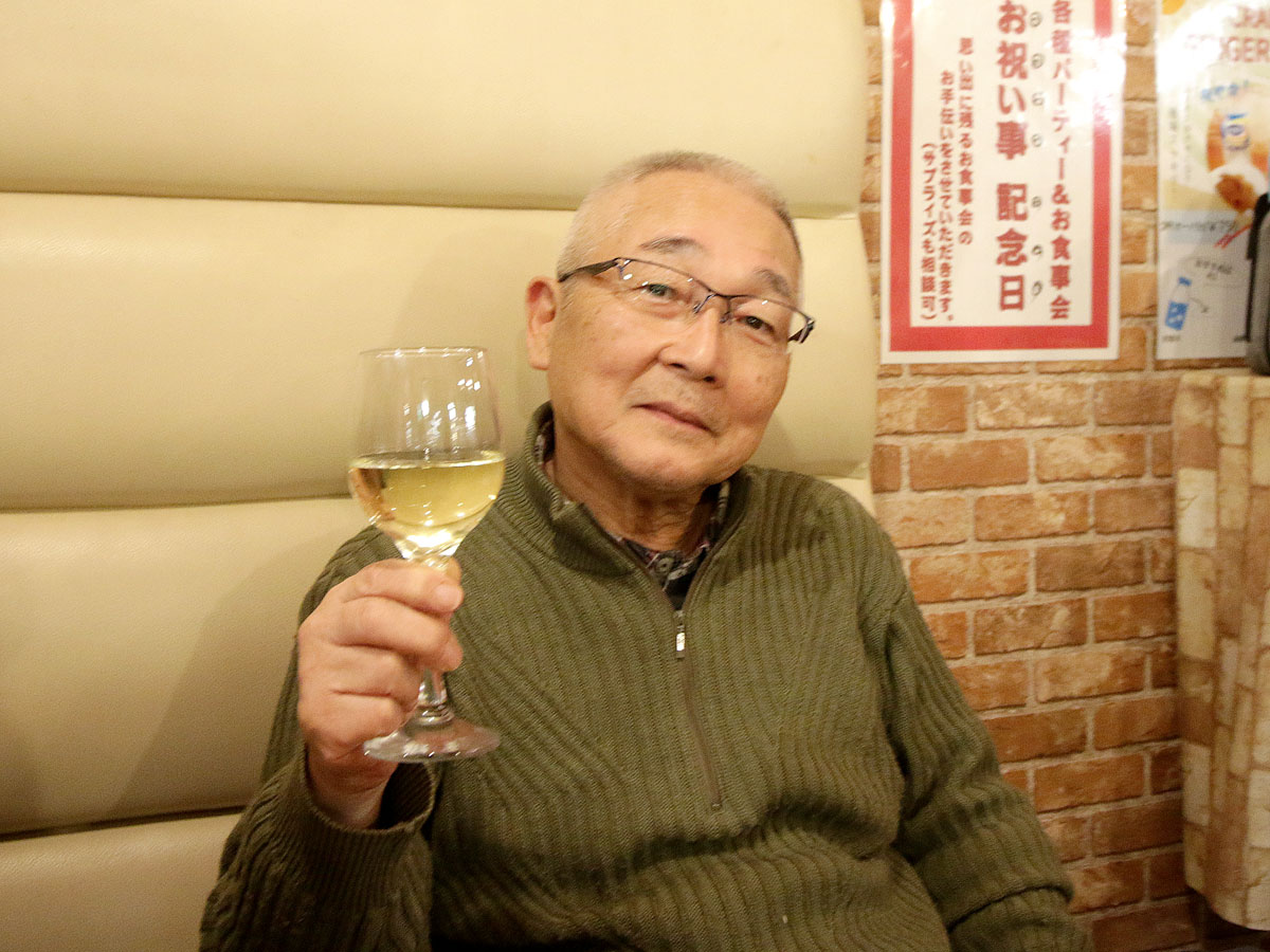 岡山ラーメン学会の黒瀬昌彦会長(忘年会の乾杯)