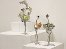 造形作家・細見博子さんの作品展「うまくいく」が現在、カフェ&ギャラリー「カフェ・アトリエZ」(岡山市南区浜の2)で開かれている。