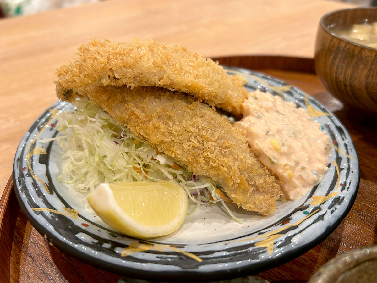 「食堂くるり・津島店」のアジフライ定食のアジフライ