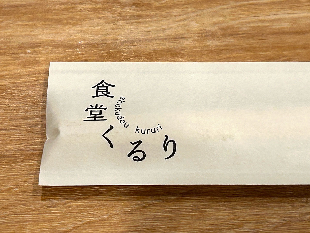「食堂くるり・津島店」のロゴの入った箸入れ