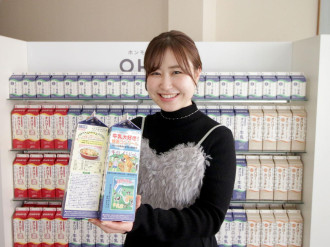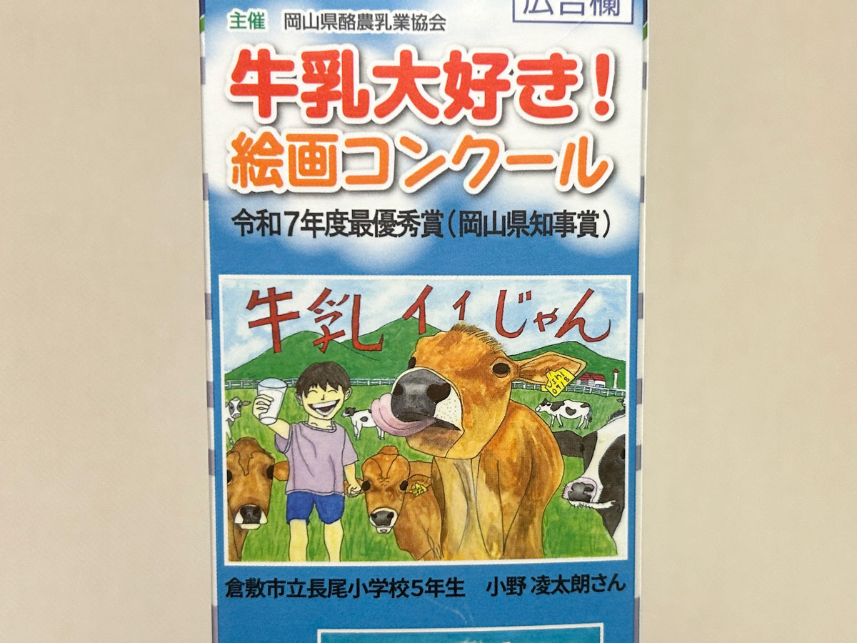 「牛乳大好き!絵画コンクール」の最優秀賞の作品が現在、オハヨー乳業(岡山市中区神下)の牛乳のパッケージに掲載されている。