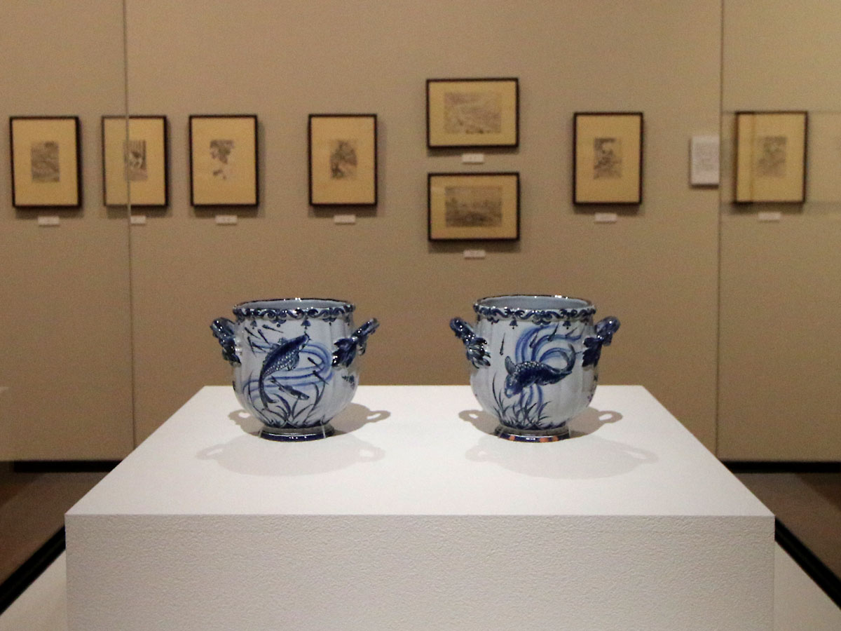 「浦上コレクション・北斎漫画~画狂!画驚!!画叫!!!」のエミール・ガレの魚文鉢