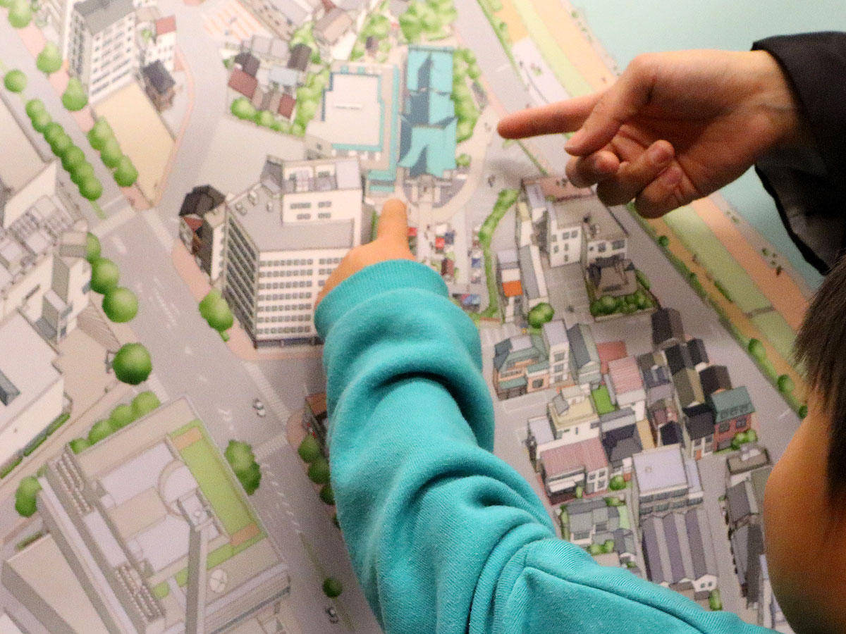 鳥瞰(ちょうかん)図絵師の中村慎吾さんが描いた「岡山神社・鳥瞰図」の奉納式が2月21日、岡山神社(岡山市北区石関町)で行われた。