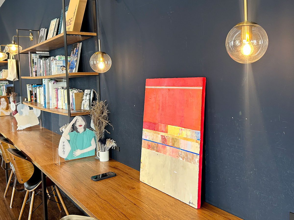 画家の横川京花さんの個展「色を纏(まと)う」が現在、ギークス岡山(岡山市北区中山下1)内の「うのまち珈琲(コーヒー)店」で開催されている。