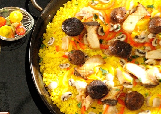 寒い季節に嬉しいあったか、ほっこりメニュー。鶏もも肉と色々木ノ子のパエリア