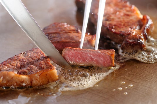 ライブキッチンで香ばしく焼き上げるステーキ