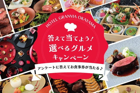 ホテルグランヴィア岡山(岡山市北区駅元町1-5、総支配人:卜部 基宏)は、2025 年10 月8 日(水)から10 月31日(金)まで、「答えて当てよう!選べるグルメキャンペーン」を開催しております。本キャンペーンは、当ホテルの直営レストランをご利用いただいた後、アンケートにご回答いただいたお客様が対象です。ご希望の賞品をご選択いただき、その中から抽選で5 名様に賞品をプレゼントいたします。
