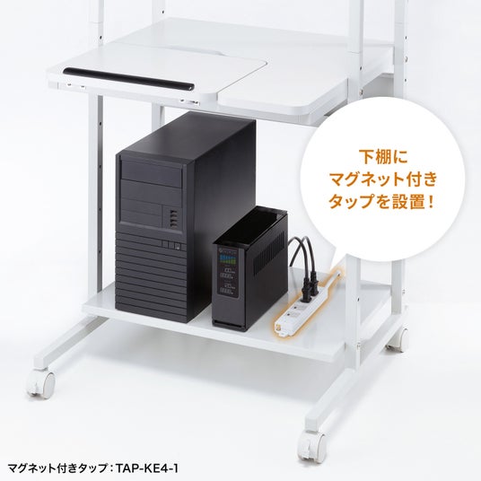 下棚とフレームはスチール製で、マグネット付きの機器を固定、設置することができます。