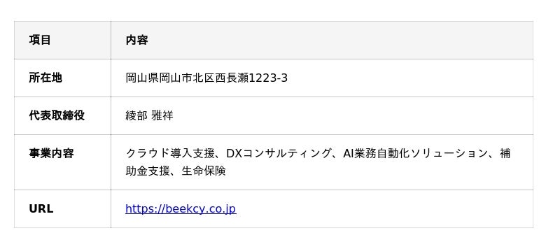 リリース発行企業:BEEKCY SOLUTION株式会社