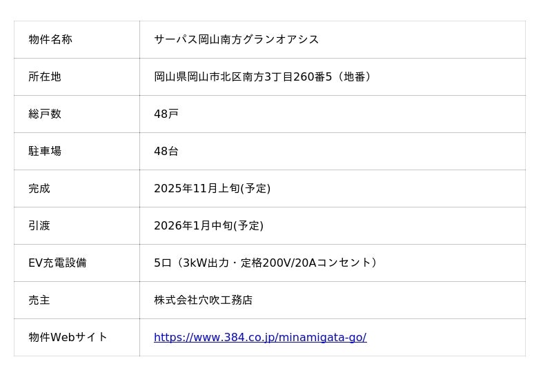 EV充電サービス「WeCharge」を展開するユビ電株式会社(本社:東京都港区、代表取締役社長:山口 典男、以下ユビ電)は、株式会社穴吹工務店の新築分譲マンション「サーパス岡山南方グランオアシス」(岡山県岡山市北区)にWeChargeスマートコンセントが採用されたことをお知らせします。