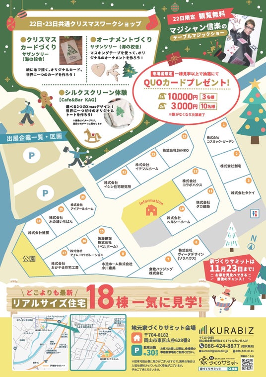 岡山の不動産会社ノマド株式会社(主催)と、WEBサイト制作やブランディング支援を行う株式会社クラビズが企画・運営を手掛ける、住宅展示場『岡山地元家づくりサミット』(所在地:岡山市東区広谷)が、いよいよ2025年11月23日(日)をもってグランドフィナーレを迎えます 。