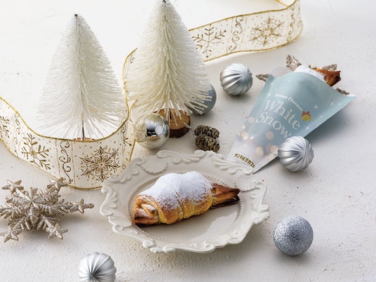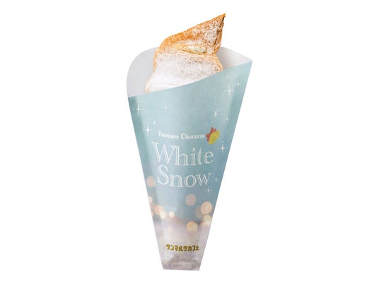 「プレミアムチョコクロ ホワイトスノー」は、クリスマスを彩るロマンティックな雪景色をイメージした、この冬限定のプレミアムチョコクロです。サンマルクカフェの定番商品である「チョコクロ」でも使用するサクサクとしたクロワッサン生地の中に、ミルキーなホワイトチョコレートを包み込み、丁寧に焼き上げました。さらに、焼き上がった表面には、まるで夜空から舞い降りたばかりの粉雪のようなパウダーシュガーをたっぷりと振りかけています。パウダーシュガーが醸し出す幻想的な雰囲気やホワイトチョコレートのとろける味わいがクリスマスムードを盛り上げる、この時期ならではの一品です。