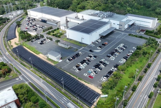 建物上部と工場敷地内に太陽光発電設備を増設した岡山製薬工場
