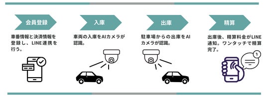 車番認識AIカメラを使い、ゲートや駐車券なしで入出庫が可能。車両の一時停止や精算待ちが不要となり、スムーズな利用を実現。待ち時間・混雑を解消します。