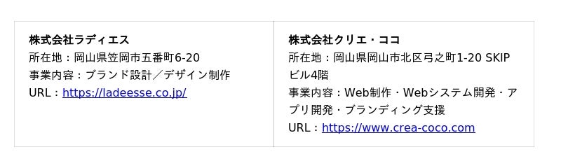 岡山県岡山市に本社を置く 株式会社クリエ・ココ(代表取締役:中嶋政和)と、岡山県笠岡市に拠点を構える 株式会社ラディエス(代表取締役:吉岡れい)は、両社の強みを融合させた共同ブランド 「Setouchi Brand Forge Coco LD」 を立ち上げました。