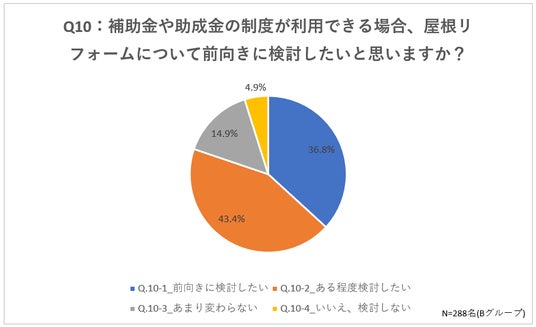 Q10:補助金や助成金の制度が利用できる場合、屋根リフォームについて前向きに検討したいと思いますか?(単一回答)