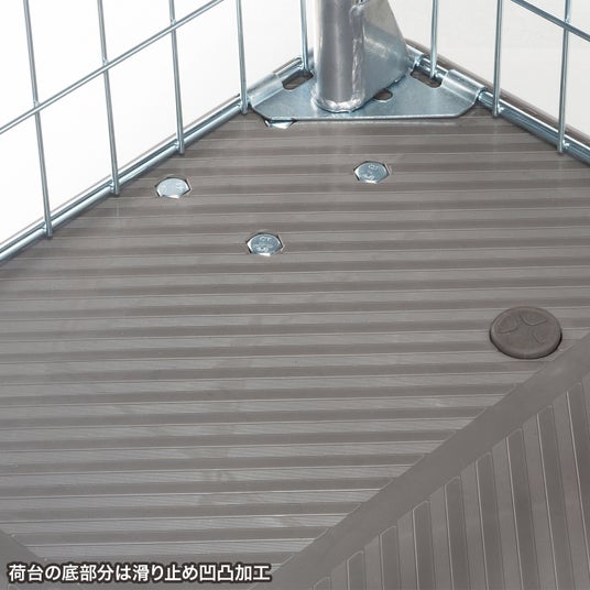 本体の荷台の四隅は衝突してもキズ付きにくい丸みを帯びた構造をしており、安全に使用できます。工場や物流での使用に最適です。