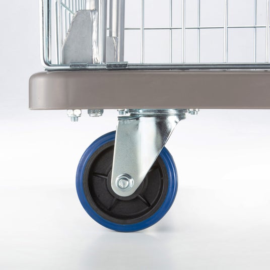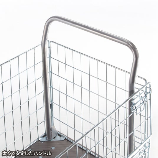 左右に取っ手が付いており、安定してどちら向きでもハンドルを握って移動できます。かごの四面のうち一面は網のストッパーを操作することで2段階の高さで開閉できます。