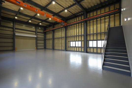 本倉庫は、定格荷重2.8tの天井走行クレーンを備え、2階部分の大半を吹き抜けとすることで、作業効率と利便性の向上を図っています。