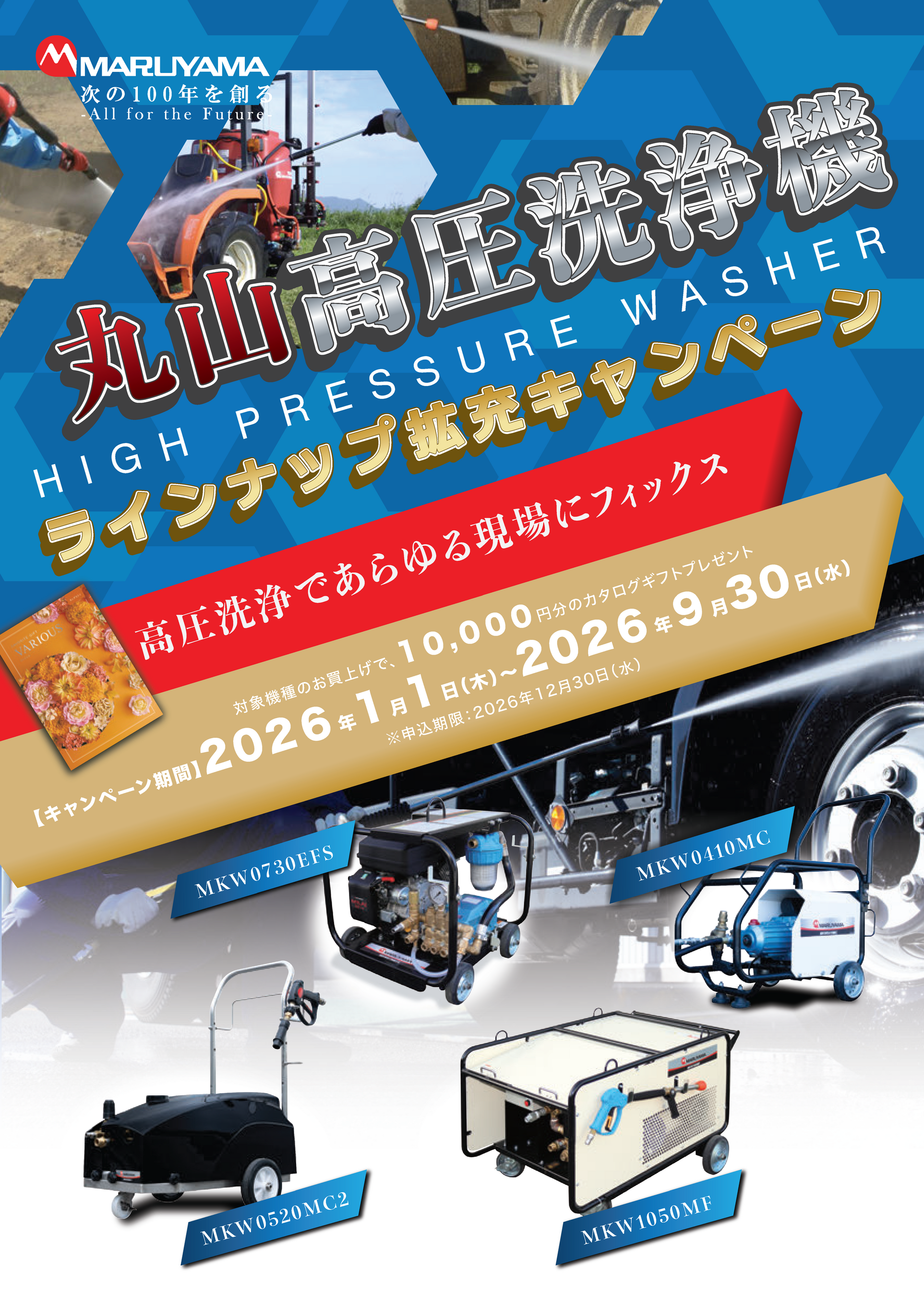 丸山製作所の高圧洗浄機が大幅にラインナップ拡充2026年1月よりカタログギフトプレゼントキャンペーンを開始