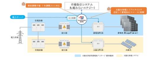 本システムは、パワーエックスの蓄電システム「Mega Power 2700A」と、ニシム電子工業のエネルギーマネジメントシステム「TAMERBA EMS」で構成されます。昼間は太陽光発電所から蓄電池に充電して出力制御を回避し、夕方は放電して売電するタイムシフトで、再生可能エネルギーの有効活用と価値向上を実現します。さらに、国内の太陽光併設型蓄電池としては初めて、需給調整市場の一次調整力にも対応しています。タイムシフトと調整力を組み合わせたマルチユース運用により、収益の最大化を図ります。