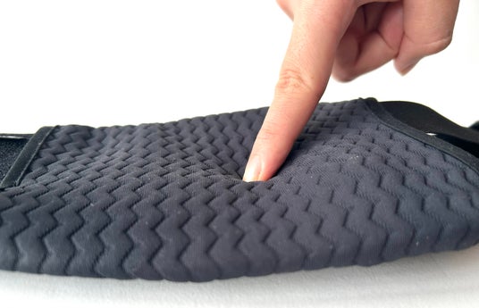 子育てや日常の動作で腰周りに負担を感じるシーンを想定し、樹脂パーツをクッション性のあるカバーで包みました。肌当たりが柔らかく、寝転んでも凹凸を感じにくい設計です。また、通気性のあるメッシュタイプの滑り止め素材で、ムレにくい快適さを実現しました。