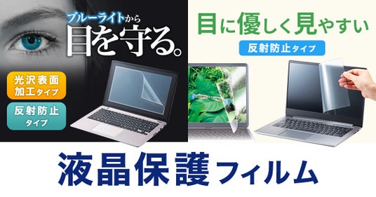画面への映り込みを抑える反射防止タイプや、画面を鮮やかに見せる光沢タイプなど、用途に合わせて選択可能です。