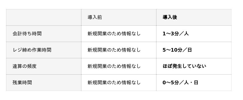 スタッフの立場から見ると、金銭管理の手間が大きく軽減されました。業務終了後のレジ締めも自動で行われるため、作業負担が減り、業務全体のスピードアップにつながっています。