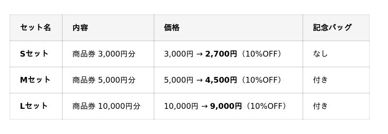 記念セット(お得な商品券セット)─最大10%OFF、当日限定販売