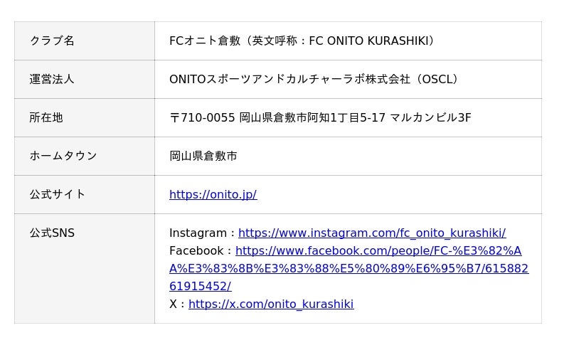 岡山県倉敷市をホームタウンとし、Jリーグ参入を目指す新しいサッカークラブ「FCオニト倉敷」が本格始動いたしました。運営会社としてONITOスポーツアンドカルチャーラボ株式会社を設立し、単なるプロスポーツクラブの枠を超え、スポーツ、文化、教育を融合させた独自のクラブづくりを進めてまいります。