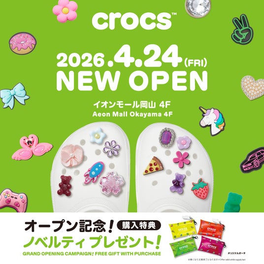 革新的なカジュアルフットウェアのグローバルリーダーであるクロックスは、イオンモール岡山4Fに2026年4月24日(金)より、新店舗をオープンします。さらに、オープンを記念したノベルティキャンペーンを実施します。